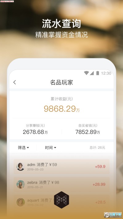 名品玩家是一款专业的收益管理应用,你可以实时查看管理你的交易明细与各种收益,随时随地掌握资金流向。
