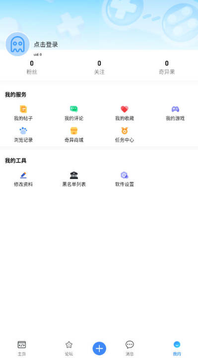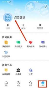 1、打开奇异社区,在【我的】界面选择【点击登录】选项,
