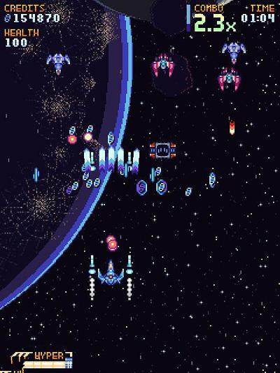 《超银河战队》类似于我们小时候玩的《雷电》,是一款画面简单的飞行射击游戏。创作灵感来自经典的街机游戏雷电系列。游戏提供了14个使用属性不同的战机供玩家选择,玩家需要在无尽的空间中战斗。游戏中没有关卡的设定,玩家需要不停的战斗,直到死亡为止,非常刺激。