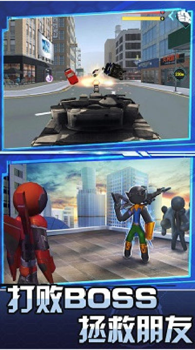 跑跑达人是一款非常好玩的第三人称式飞行射击游戏,使用火柴人的方式进行利用高科技铠甲与各种敌人展开对战,消灭各种触犯法律的犯罪分子,尽情畅快的享受吧。