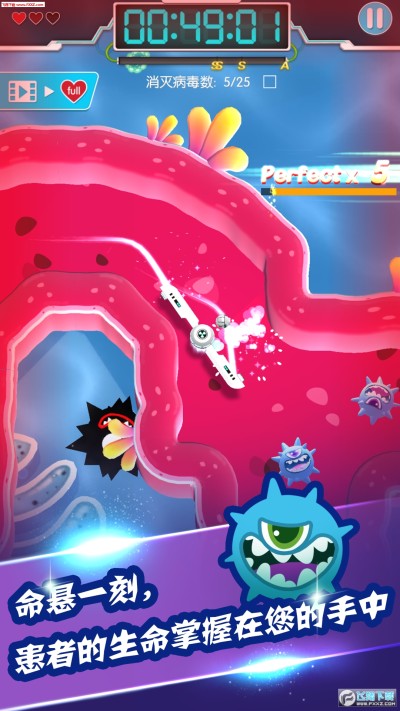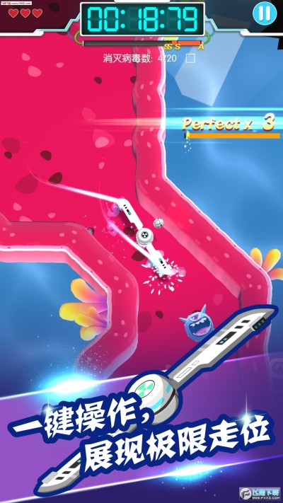 玩家需要控制纳米机器人的移动,在微观的人体世界内用最快的速度消灭病毒,