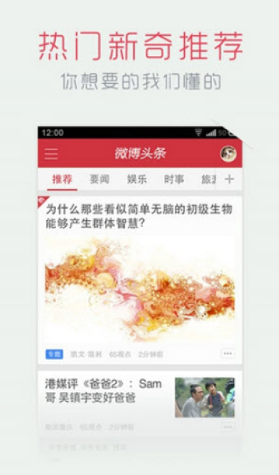 - 最热头条:亿万微博用户亲自给你筛选的社会热点,无需你再去搜索新闻