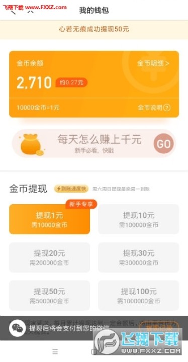 2.10000金币可兑换1元现金!