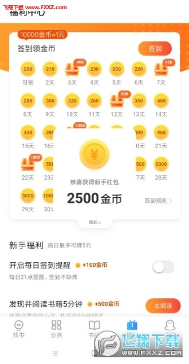 2.除了阅读,每日签到、大转盘都能领取金币!