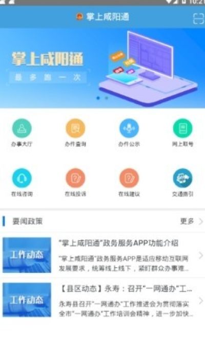“掌上咸阳通”政务服务APP按照功能优化、升级迭代的原则,本次上线推出1.0版本。