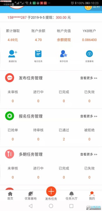 可以发布任务和接任务,接任务后按天完成即可,会员可以通过优客任务接各类任务,按要求完成任务即可获得对应的奖励