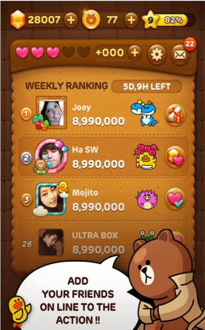连线消除是一款由LINE Corporation开发的消除类休闲游戏,玩法和传统的消除游戏一样,不过人物非常萌动可爱,当你消除的时候3只动物还会做出可爱的表情。