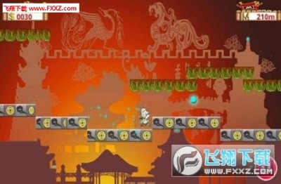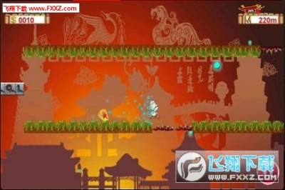 一只钺(注意不是柳忍者的飞镖)不断追袭着功夫和尚,功夫和尚需要不断奔跑跳跃求得一线生机,触摸屏幕控制功夫和尚躲避路上的障碍物