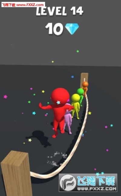 一款魔性十足的休闲闯关游戏,游戏的玩法非常魔性并且充满乐趣。在游戏中,你需要控制所有魔性的火柴人进行跳跃,踩准绳索的摇摆节奏,千万不要让绳子给绊倒,你要时刻记住,这是一项团队运动,需要团队的每个成员都互相的配合好,才能取得胜利。