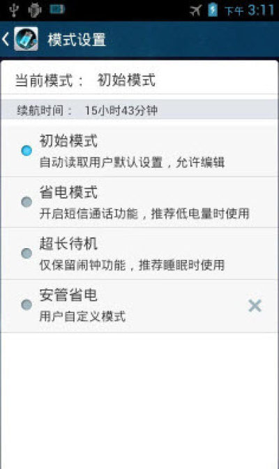 省电模式:为您提供普通省电模式、省电模式,睡眠模式,还可进行个性化的省电模式设置,轻松DIY 最适合自已的省电模式。