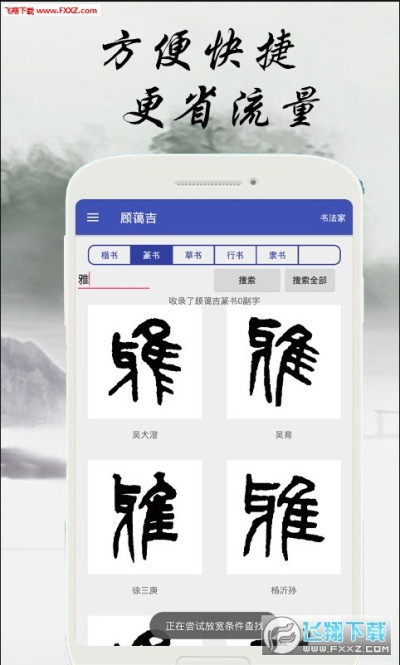 博雅书法字典让用户能够去进行书法的学习,用户可以用来参考非常多的书法名人的作品,根据自己的理解来进行书法的学习,而且用户还可以书法的练习,非常的高效,并且还能够为用户节约纸张成本!