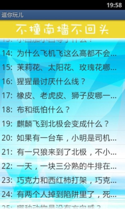 逗你玩儿是一款脑筋急转弯类的休闲手游,与其说这是一款游戏,倒不如说一个脑筋急转弯的题库。游戏中拥有丰富的题库供你解谜,你需要按照题目所给出的内容,进行解答!愉悦自己,同时还可以快乐大家!