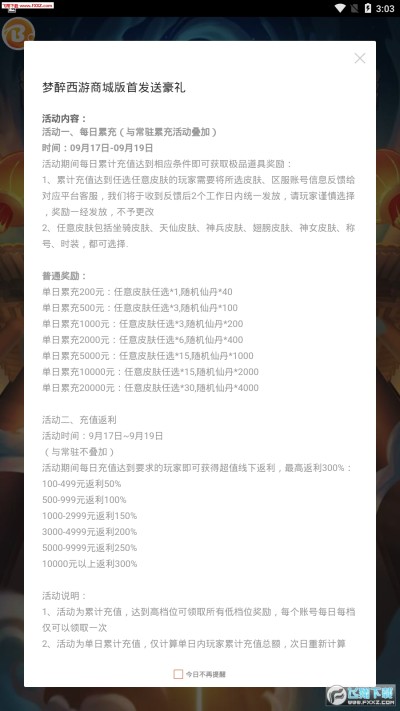 5、首充比例1:2000(首冲双倍),充值完所有档位重置双倍返利,充值比例1:2000