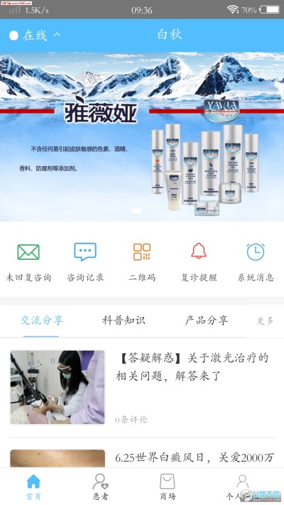 2.文章管理:通过APP查看更多关于皮肤的问题;