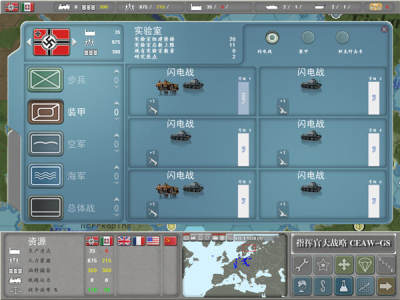 - 包含12个不同类型的单位,包括步兵与摩托化步兵、装甲单位、驱逐舰、潜艇与航母,每一个种类都有自己的优缺点;