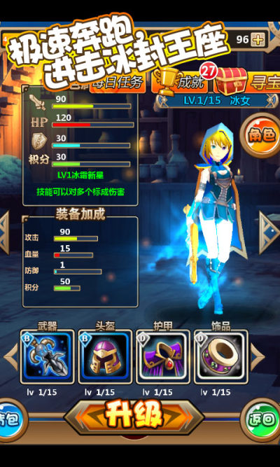 游戏为玩家准备了三个DOTA角色,分别是船长小黑和冰女。每一个角色除了样子不同之外,连自身的属性及攻击效果也不同,而且我们还可以对他们进行强化和装备武器,利用ARPG元素来增强自身的实力,让玩家们获得更好的跑酷体验。