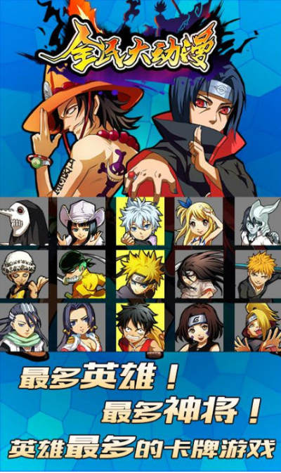 全民大动漫是一款由深圳市凡卓广告有限公司开发的动漫人物大乱斗类型的卡牌对战游戏,游戏中包含了大量知名动漫人物,包括了海贼王,死神,妖精的尾巴,火影等火爆动漫。