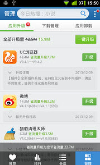 手机端新增省流量升级功能,无需下载完整应用包也可轻松完成升级