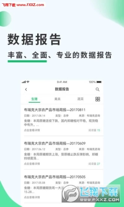 市场资讯——及时、丰富、有用。数据爬虫锁定众多一手信息源,快速提供市场一手资讯;品种上包括生猪、禽类、蔬菜、水产和粮食行业等数百个品种,类型上有市场分析、价格评论、新品种推荐等多种形式;信息源审核+资深研究员信息审核过滤。