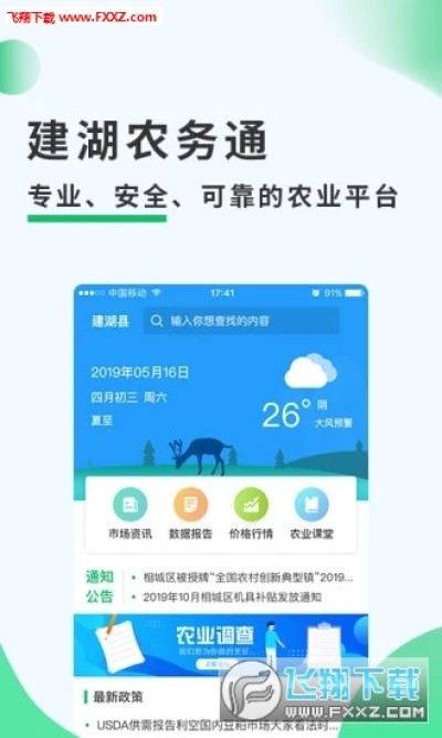 建湖农务通app是一款针对建湖县农业打造的手机app,这款软件可以为用户提供非常全面的农业服务,建湖农务通app主要提供政务还有商务服务,包括农业政策、补贴申请、市场资讯、价格行情等等!
