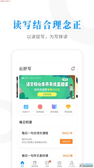 云舒写app是为用户推出的阅读和写作练习的学习平台,专注于培养学生们的阅读能力和写作能力,学习内容十分的丰富,且教学方式专业,让学生专注的进入学习状态,提高学习效率,有需要就下载云舒写app体验吧。