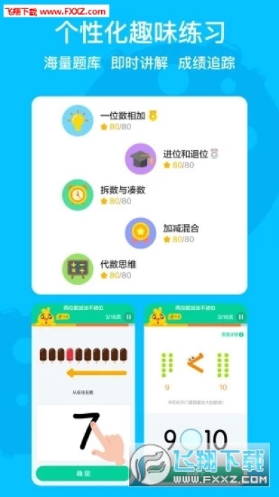 *兔兔练习本:支持口算、比大小、找规律、竖式等的练习,所有练习题均支持手写在线作答,还会有实时的语音反馈和趣味奖励。