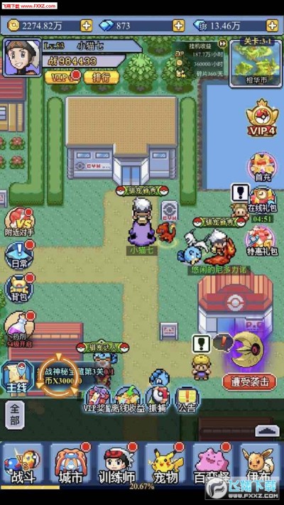 《怪兽大乱斗》是一款采用复古像素美术风格的放置养成游戏,玩家在游戏中将化身为一名驯兽师,对宠物精灵情有独钟的你,从小的梦想便是成为世界第一的驯兽师,于是你变从自己的家乡出发,踏上了充满奇遇与危机并存的冒险征途,沿途收集自己喜欢的宠物精灵,结交志同道合的朋友,朝着心目中的梦想前进