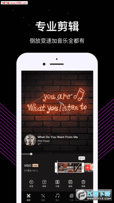 4、专业的视频剪辑功能,倒放变速海量音乐随心听。