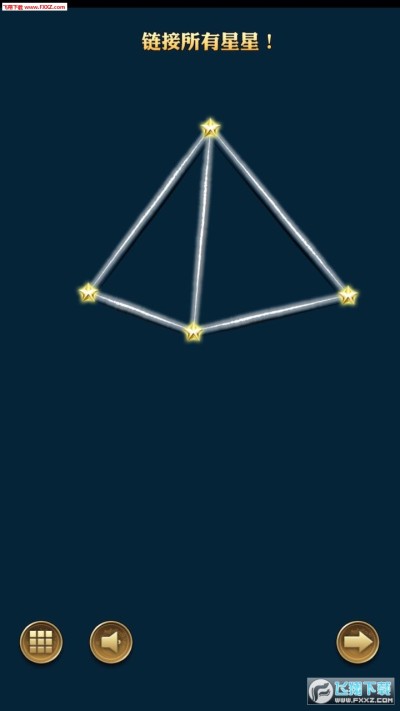 星星相连这款游戏是一款休闲向的连线游戏,游戏中需要将这款小星星都连起来,让玩家朋友们可以体验这款有趣的星星游戏所带给你的乐趣体验吧!星星相连所需要的就是让这些星星全都用一根线连接起来,而且不能产生交叉重复的路线,这就要好好的考虑一下连线的小技巧了。