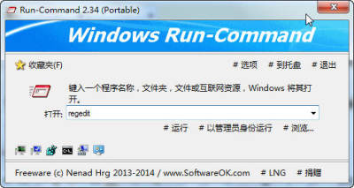 Run-Command 看起来就像系统内置的“运行”Windows一样,使用方式也差不多。不过 Run-Command 面板上多了许多常用功能,也可选择要以一般模式运行或已系统管理员身分运行指令或应用程序。该工具同样为绿色软件,无需安装,下载后打开为英文,我们可以点击下方的#lng,选择中文即可。