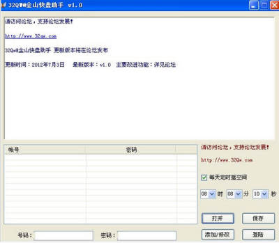 1、金山快盘批量签到,领取空间和积分; 2、每天定时签到;