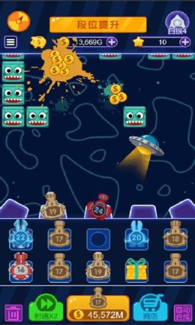 1、结合放置规则令玩家可以获得海量财富,这些财富都是来自炮台防御击败外星人的奖励;