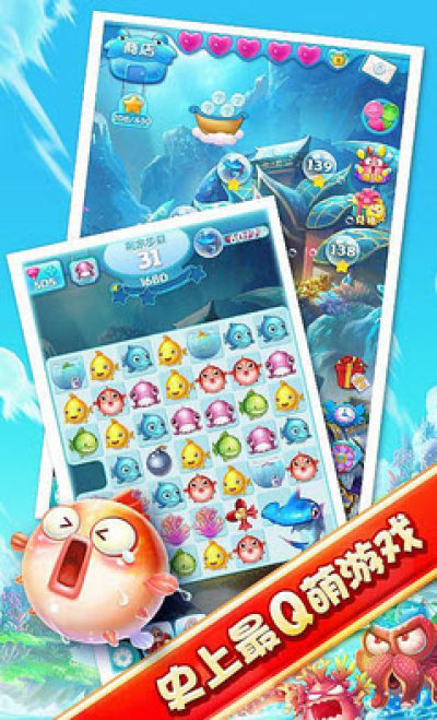 《小鱼爱消除》这款游戏的英文名是Fish Epic,在登录中国以前一直都是占据最受欢迎榜前10!现在国内的玩家也可以玩到这款好玩的消除手游了。丰富的地图,多样的玩法,还有大量福利赠送,绝对让玩家朋友们停不下来。