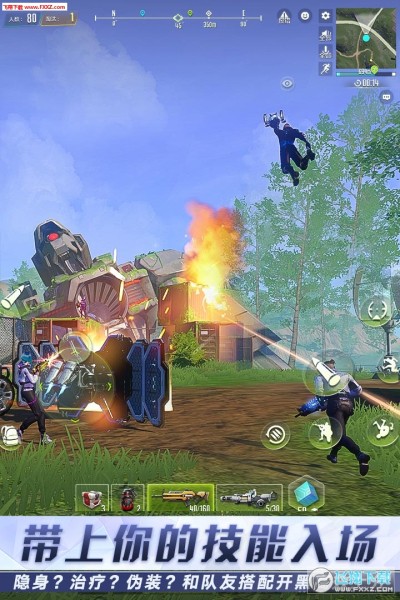 化身为树伪装埋伏?隐身力场隐身刺敌?召唤掩体阻挡火力,召唤瞭望塔居高临下?火箭喷射上天对地扫射?21种技能中选择3种入场,一键召唤,和开枪一样简单。灵活运用你的超能战技,享受新鲜枪战竞技乐趣。