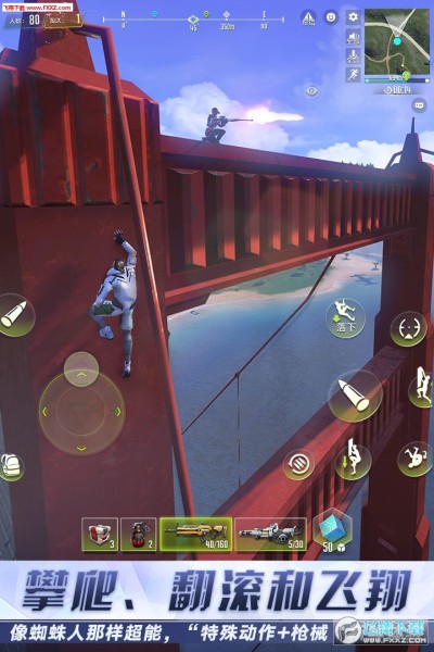 像蜘蛛人一样超能,爬上所有建筑物,山巅、树木。悄无声息爬上高塔,在背后给对手致命一击;后面有人摸上来了?迅速爬到房上,居高临下占据主动;爬到大桥顶上,拿个八倍镜一枪把车里的人干掉,爽快无比!