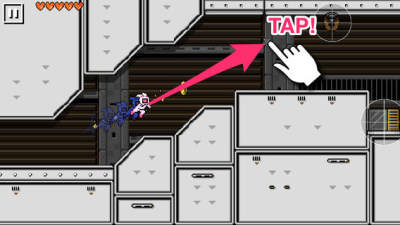 操控白兔人的移动,是通过发射钓丝来拖动前进,在允许运动的空间范围内,触碰任意一处地方,就能发射钓丝,利用钓丝从左侧飞到右侧,途中需要避开各种飞来的障碍物。