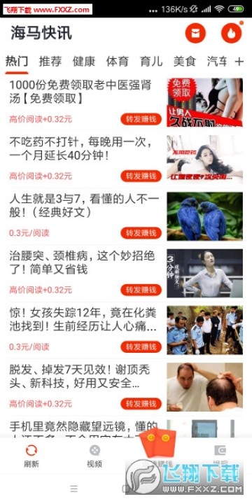 海马快讯app是新上线的以转发文章来获利的手赚平台,每天都会更新大量的热门文章,用户可以自己阅读浏览,也可以分享给好友,只要好友阅读了你就有钱赚哦,单价也还是不错的,感兴趣就下载海马快讯app体验吧。