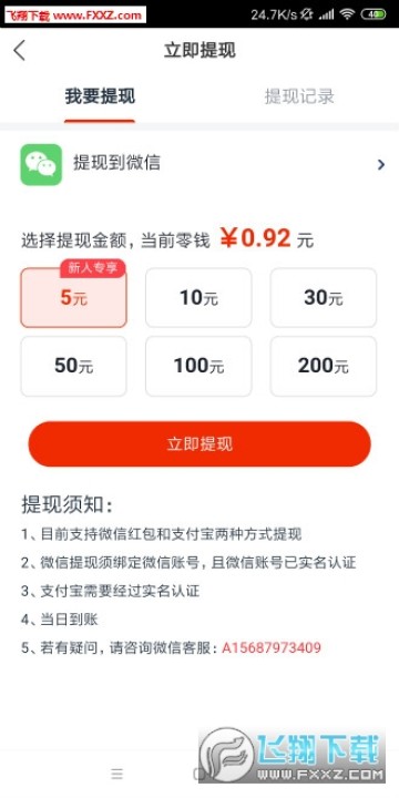 提现要求:首次提现满5元即可申请提现到微信,之后提现10元起,当日到账