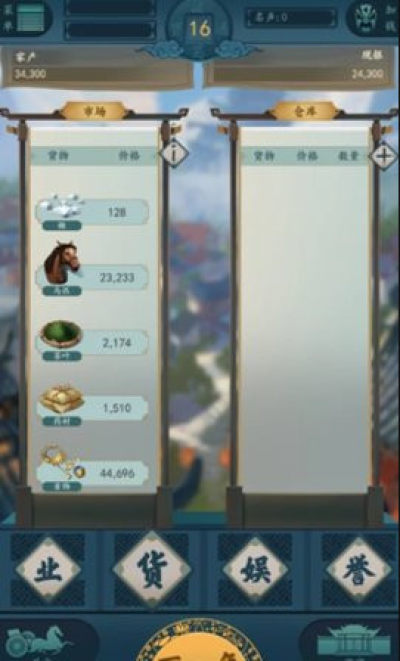 市场:点击物品可购买/出售,低买高卖,扩充物资资本,完成资本积累