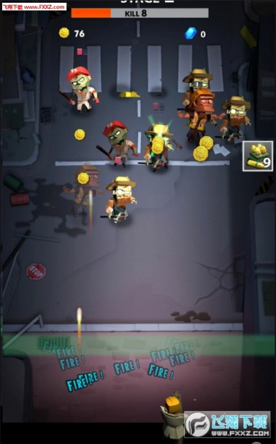 3、点击屏幕的既可以去轻松的发射子弹,控制好射击的方向,不断的去击杀僵尸。