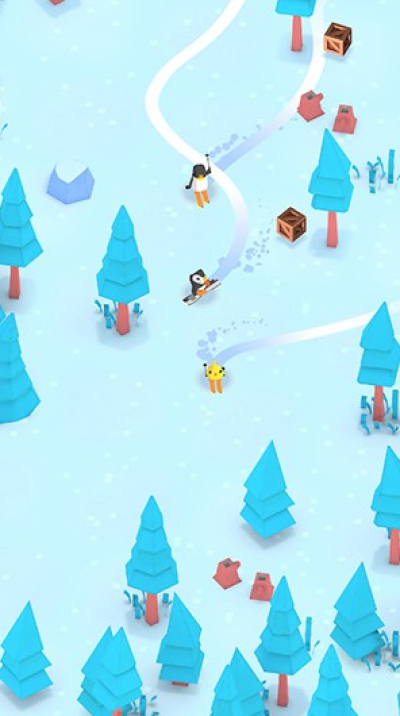 在滑雪道上绊倒不知疲倦的企鹅,在道路上滑行,越过悬崖,滑出完美线条,收集所有的礼箱!