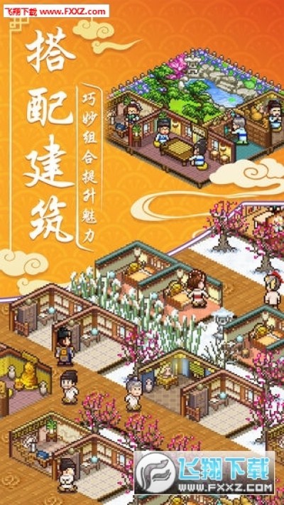 多种建筑任意搭配,清风间、凌云间、书斋、浴堂,建造繁华的客栈时要注意房间的属性搭配哦。