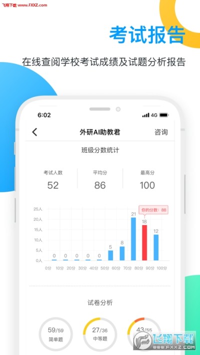 提供考试成绩查看与报告分析,便于学生了解学情,开展巩固训练。