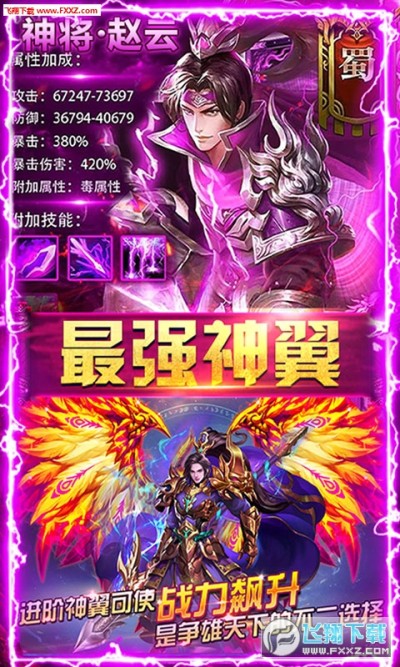 《神将三国真3D》是一款真3D霸战动作手游,收集三国群雄武将,与你一同驰骋沙场!带领关羽,赵云等绝世名将参与两汉三国近百场经典战役,草船借箭,赤壁之战,官渡之战,近千关高质量副本。青龙偃月刀,丈八蛇矛,青釭剑等无数神兵利器等你强化,无上限自由成长空间,革命性全屏互动操作,主机级操控打击感,点划横扫,爽快连击,配合华丽武将技能特效,享受万军从中取上将首级的碾压快感。更有单人、3V3、军团等多种丰富PVP模式燃战天下英豪,与卧龙凤雏一同谋略天下!武将割草,自由强化,指破千军,唯我无双!