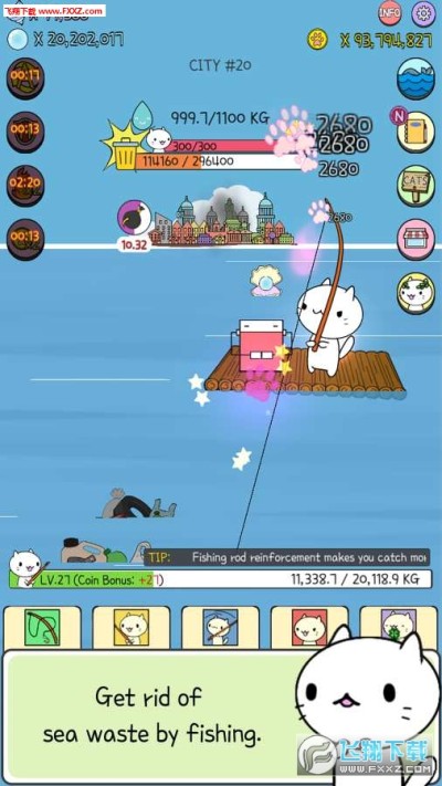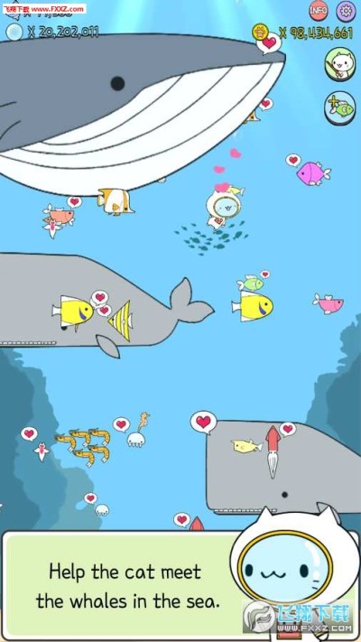 2.20余种可爱的猫咪解锁,丰富多样的海洋生物探索,不断清理垃圾还大海一片干净清澈;