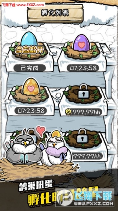 还要负责照看鸽王鸽后的金蛋银蛋铁蛋,孵化培养Ta们,为鸽房带来收益~