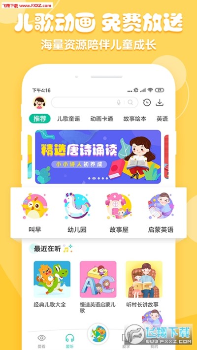花生儿歌是一款专为0至12岁孩子打造的早教启蒙APP,是孩子的贴身移动教育专家,为爸爸妈妈们提供一站式育儿解决方案,是千万家庭早教启蒙的好选择,软件汇集孩子们喜欢的儿歌童谣、卡通动画、绘本故事、国学古诗、益智app等内容,陪伴宝宝快乐成长!
