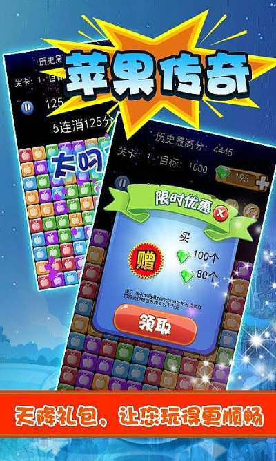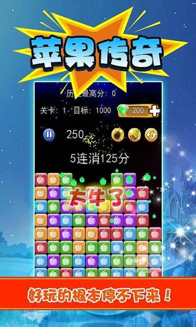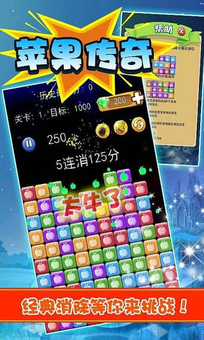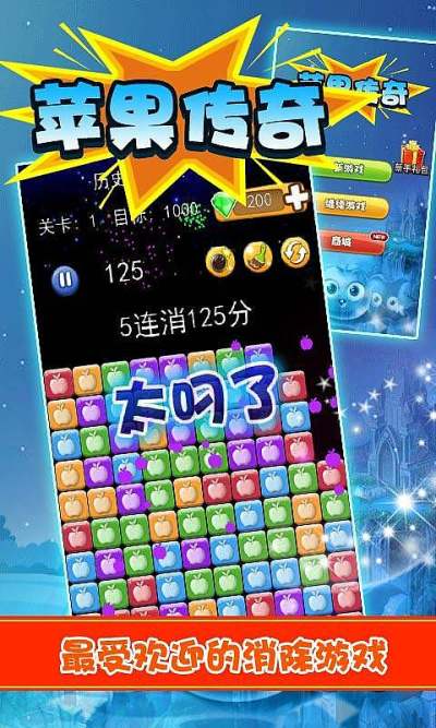 苹果传奇可以说是今年安卓平台上最优秀最萌的三消游戏之一。游戏界面简单,包体小,操纵流畅,单次点击即可消除,爽快连击满天果果,让你享受刺激的消除快感!