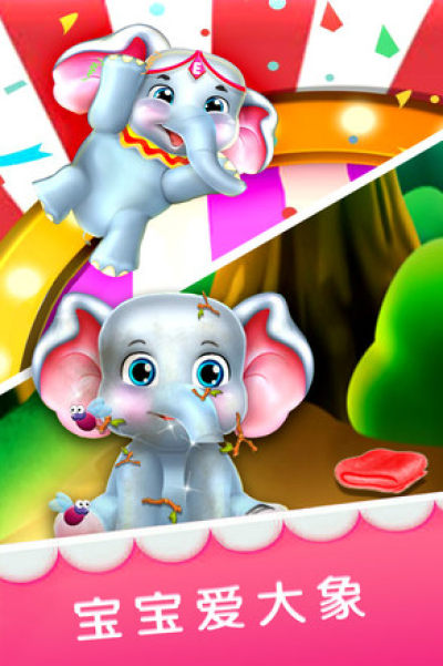 宝宝爱大象是一款休闲益智手游游戏中我们的玩家们可以与可爱的大象宝宝们一同玩耍,在这里帮助大象进行清洁,给他们喂水喂食,帮他们穿戴漂亮的衣服,对游戏感兴趣的小伙伴们点击下载体验吧!