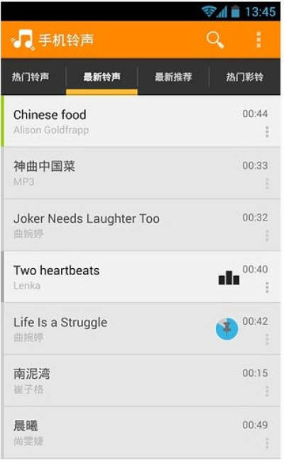 好铃声安卓版是一款非常不错的功能超强的手机音乐APP,该软件集在线听歌、下载歌曲、彩铃设置、手机铃声设置、短信和闹铃声设置等功能为一体,大家可放心下载使用。